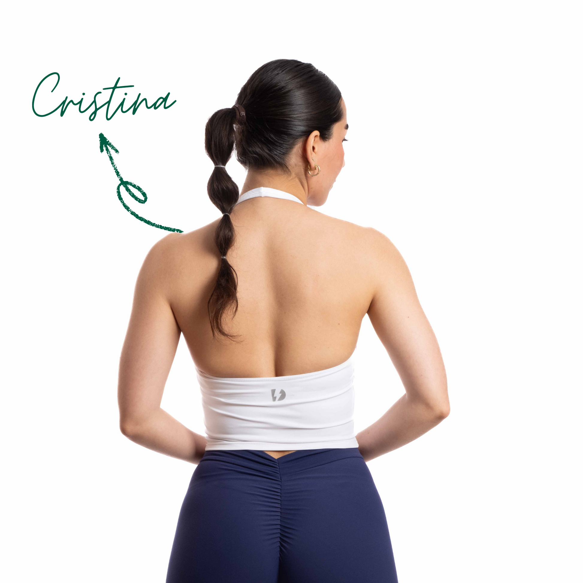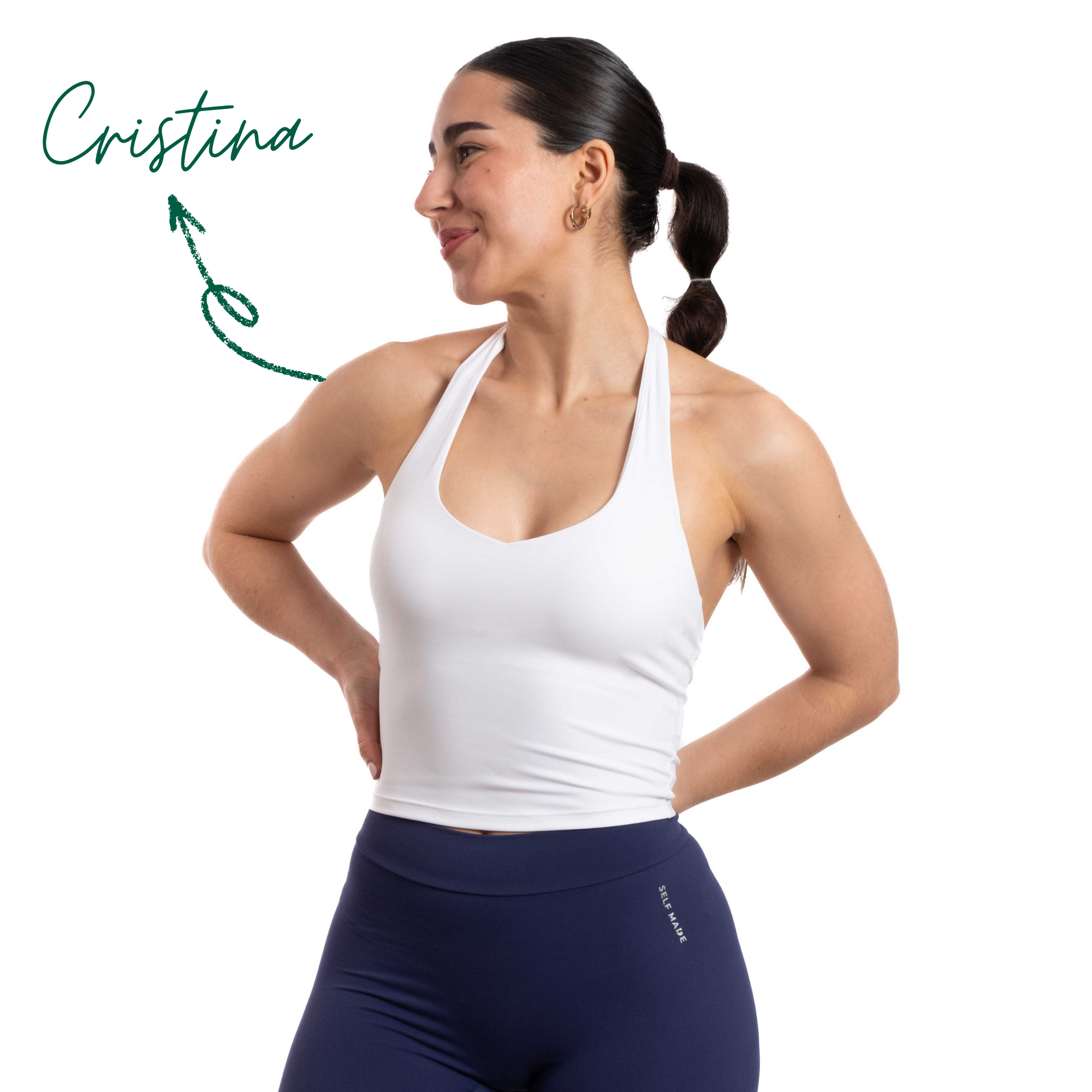 Cristina tiene de pecho 85B, mide 1'59m lleva top S y legging S
