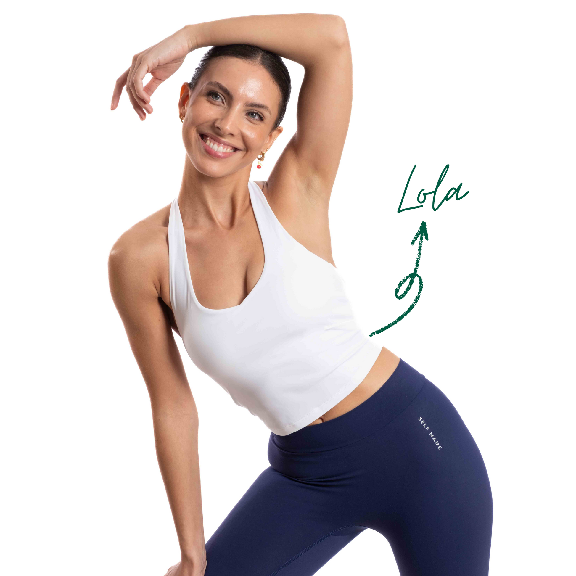 Lola tiene de pecho 85B, mide 1'62m lleva top S y legging S